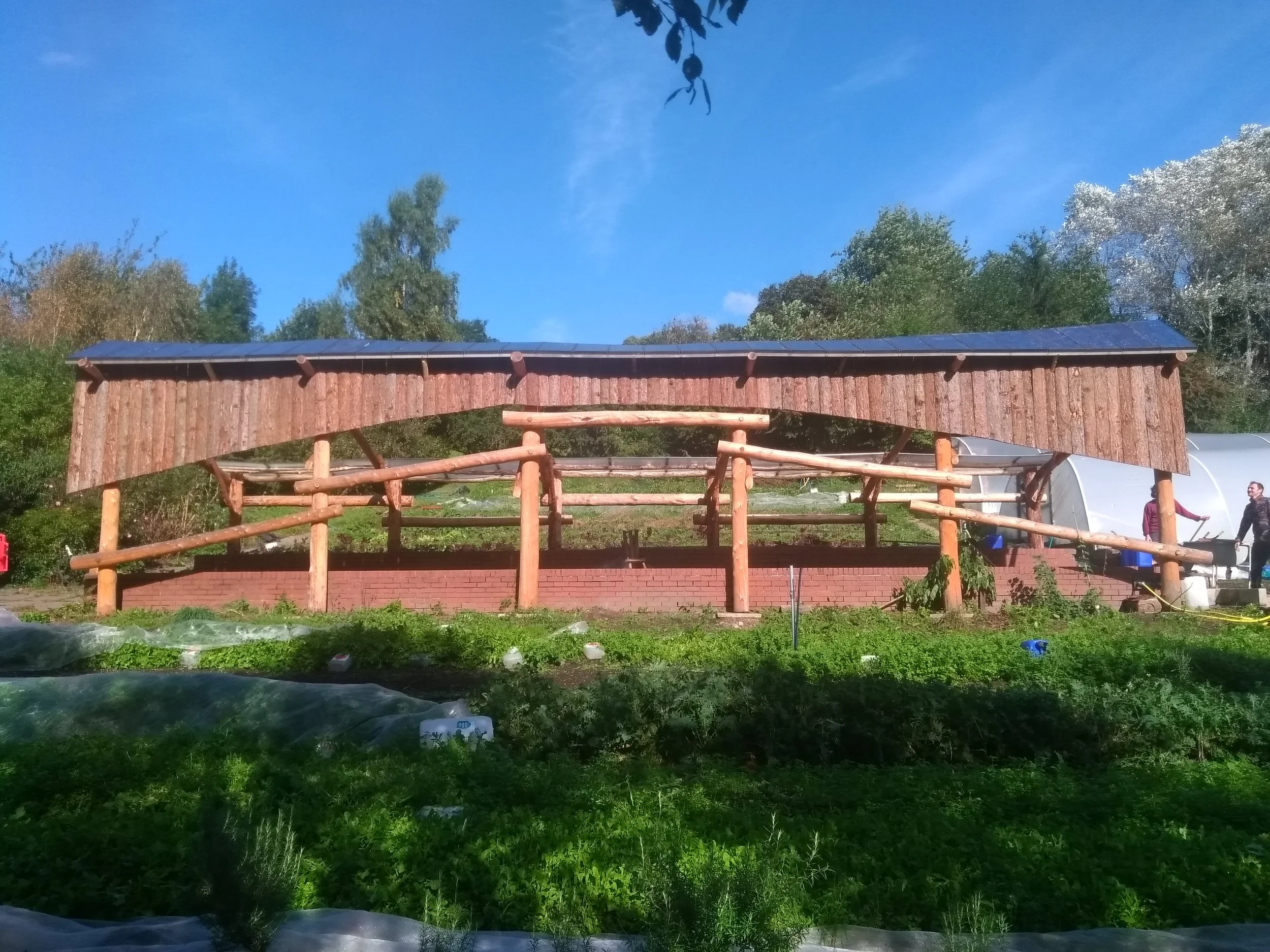The erection event for a ‘social polytunnel’ space at the Meanwood Valley Urban Farm in Leeds, a community structure created over 3 weeks using a pool of local vounteers