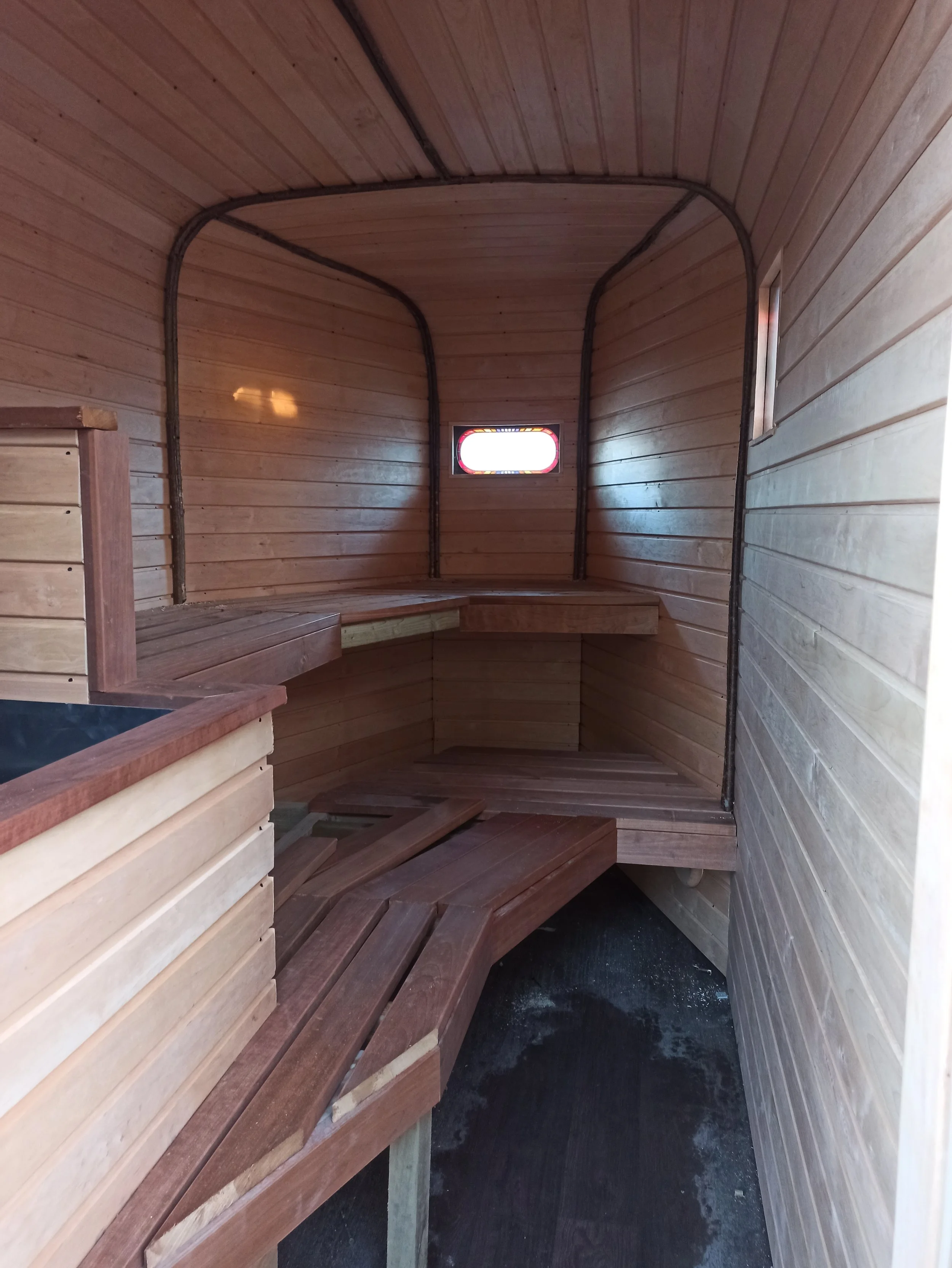 A conversion of a classic horsebox trailer, providing excellent thermal performance and a design that showcases the curved wall shapes. The sauna is a versatile addition to the Leeds Community Sauna business and specified to be robust for the rigours of continual use and travel. We’re proud to be part of creating structures that serve the wider community and we have created a space that offers a luxurious and intimate experience.