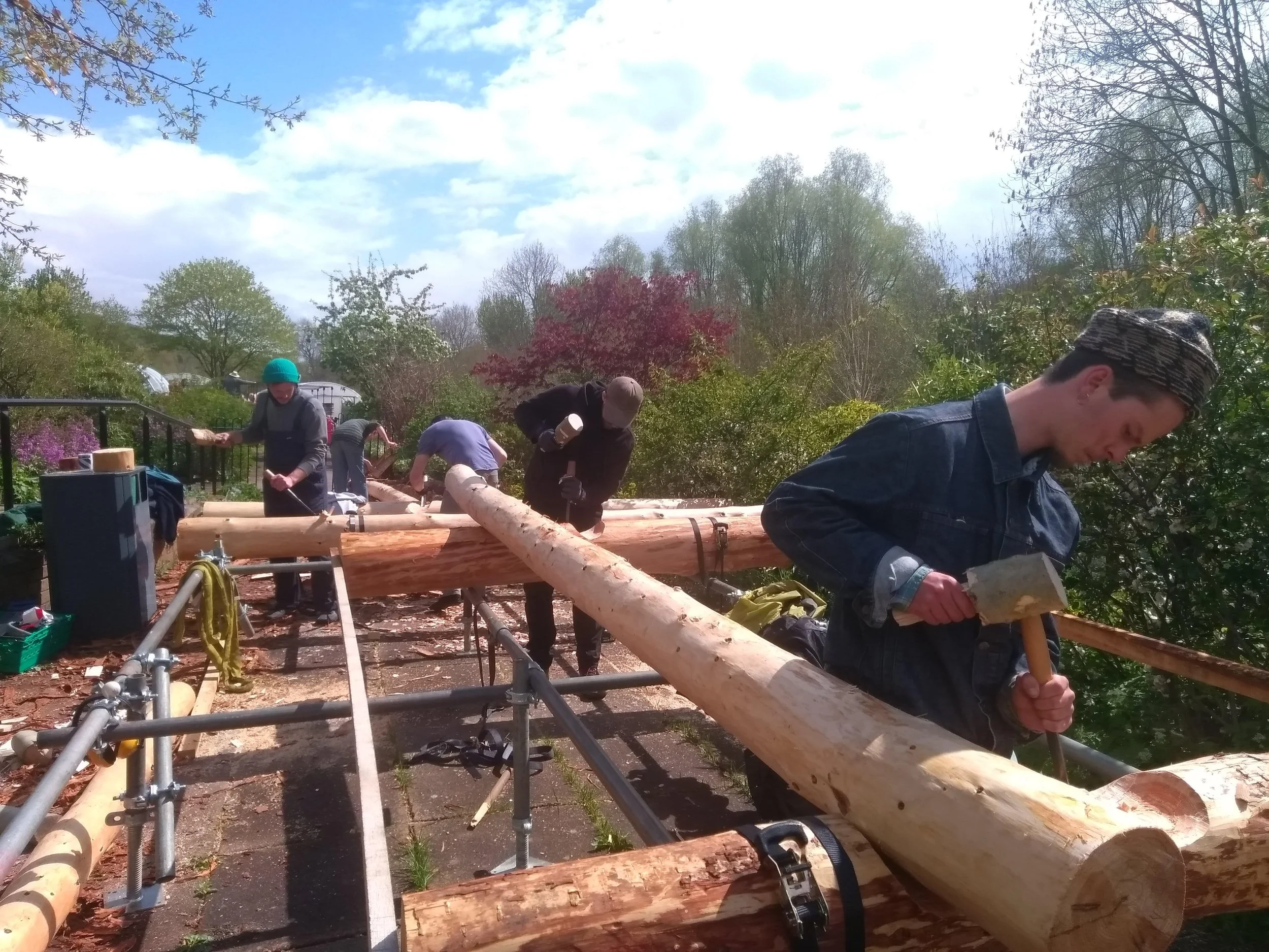 In a typical build we will be using power and edged tools throughout, with guidance and direction shared throughout. Building familiarity with new tools and techniques on a live project can be daunting and we encourage people in their learning process.