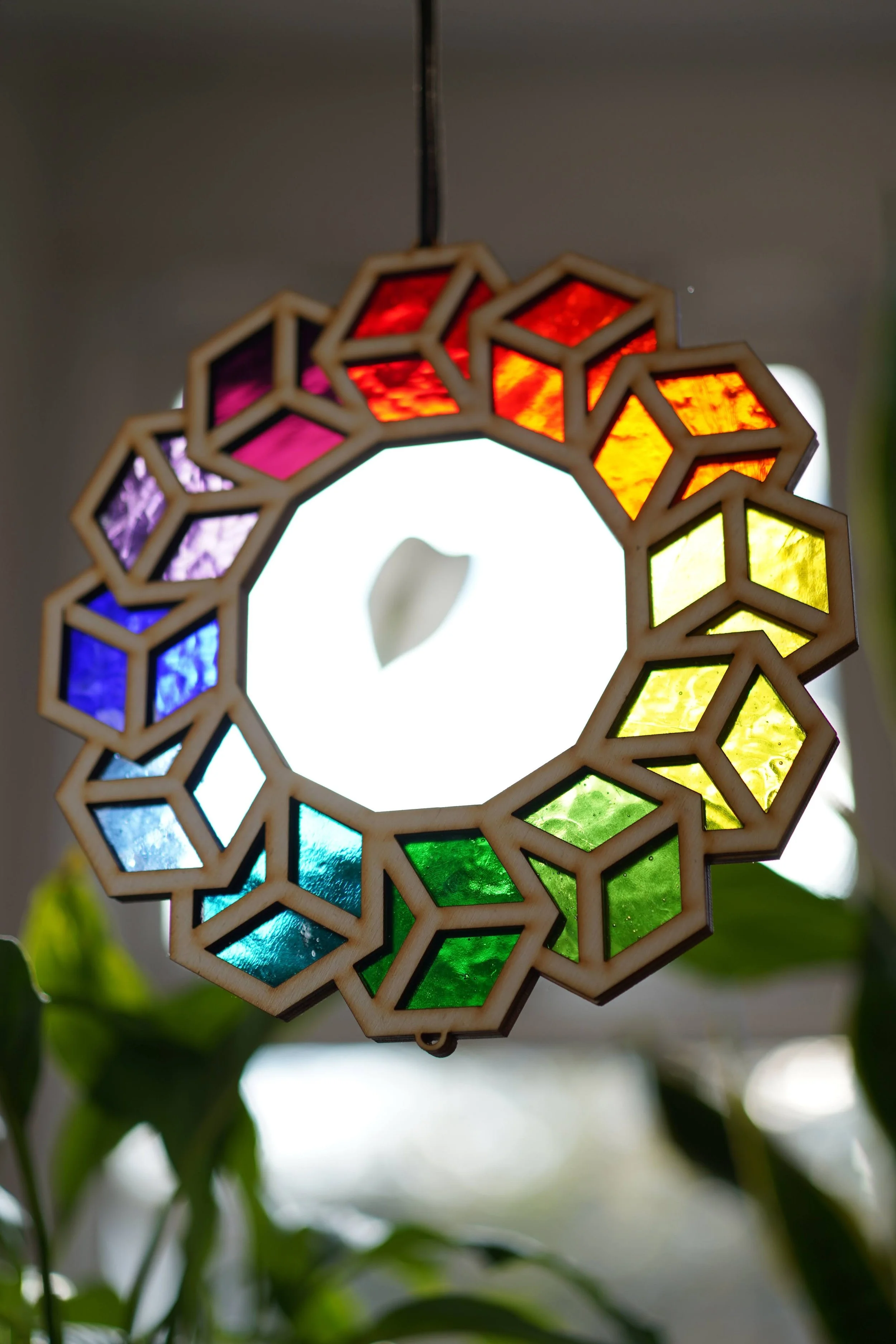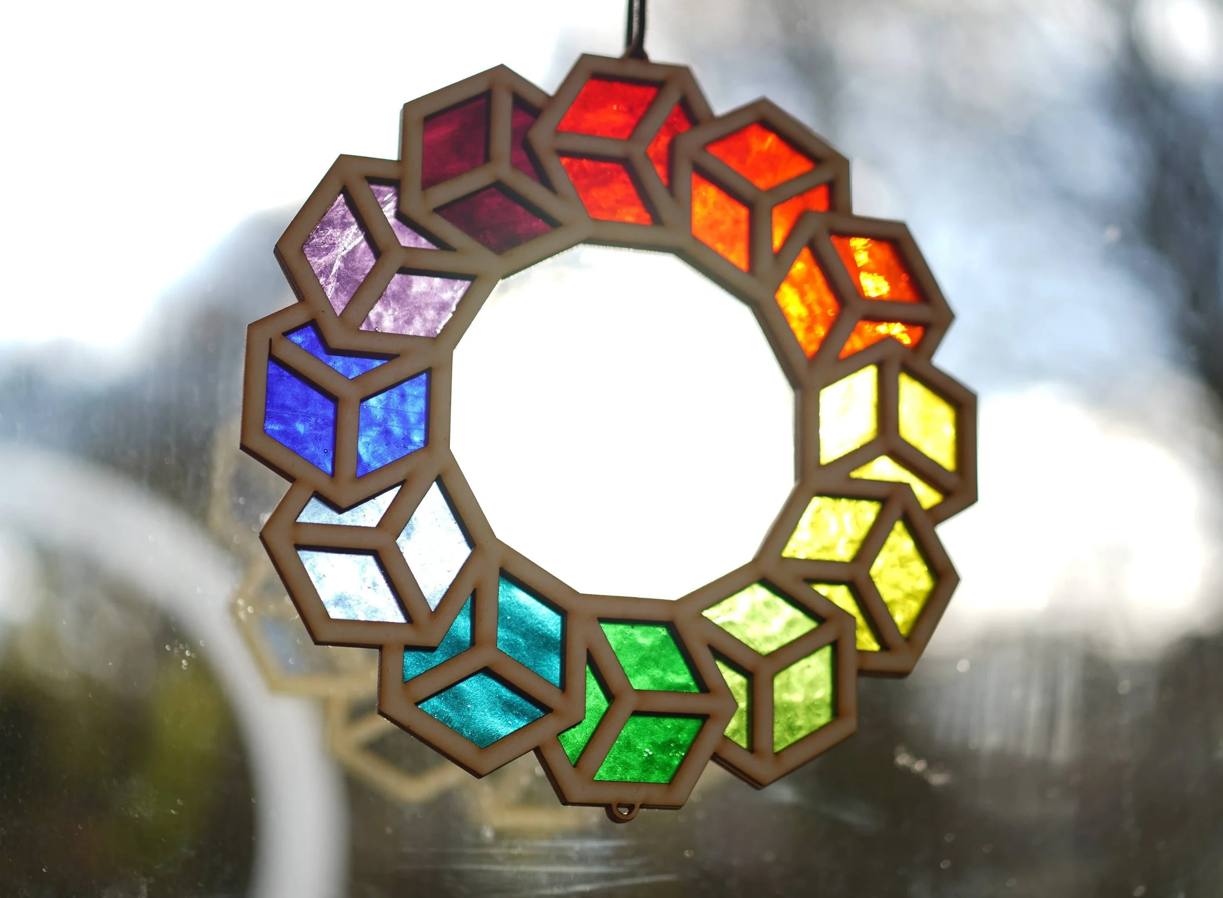 Our stained glass is made through a novel system of glass encapsulated within wooden frames, elimanting the use of lead and facilitating a wide scoper of viable designs and applicability. From bespoke shaped frames to lightboxes and movable pieces, we’re creating innovative designs and approaches for how stained glass can be used as a material.